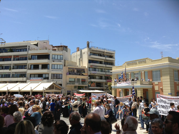 Στην πλατεία Ελευθερίας, έχουν συγκεντρωθεί πολύτεκνοι, από Ηράκλειο, από Λασίθι ,Ρέθυμνο και Χανιά οπου διαμαρτύρονται με πανό και συνθήματα για την κατάσταση που βιώνουν.