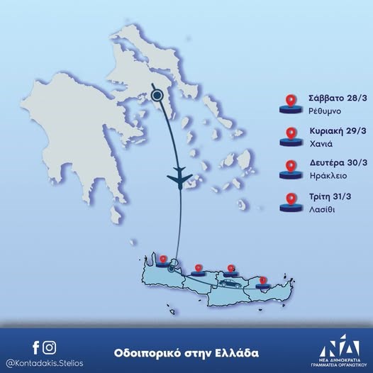 Μάλιστα την Δευτέρα 30-3-26 στις 18:30, στο ξενοδοχείο Ibis στο Ηράκλειο, θα πραγματοποιηθεί διευρυμένη συνεδρίαση της τοπικής οργάνωσης της Νέας Δημοκρατίας ΔΕΕΠ Ηρακλείου, με τη συμμετοχή του Γραμματέα της Πολιτικής Επιτροπής του κόμματος Κώστα Σκρέκα και του Γραμματέα Οργανωτικού Στέλιου Κονταδάκη, των Βουλευτών και στελεχών του κόμματος.