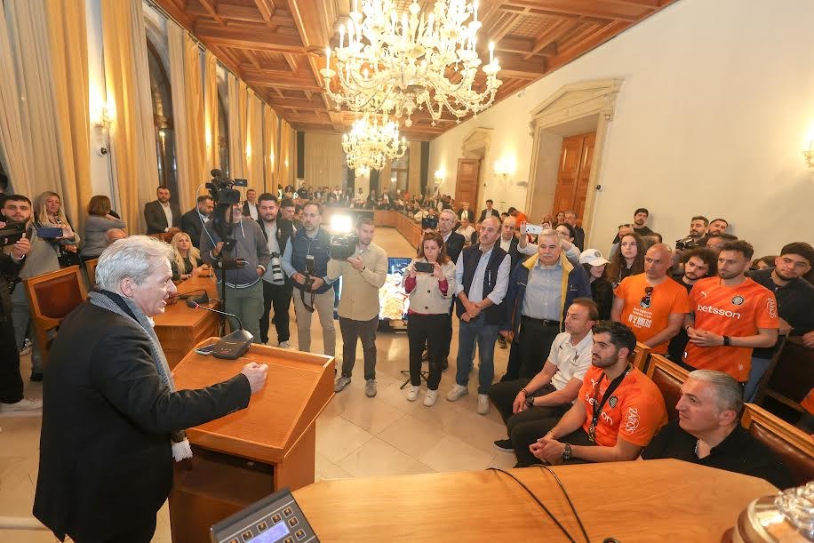 Ξεχωριστή στιγμή η ύψωση του τρόπαιου μέσα στην αίθουσα του Δημοτικού Συμβουλίου «Ελευθέριος Βενιζέλος» από τον Μιχάλη Μπούση και τον Αλέξη Καλοκαιρινό αλλά και οι εικόνες από τα παράθυρα του ιστορικού κτιρίου της Λότζια με το κύπελλο να σκορπά ρίγη συγκίνησης και τους φιλάθλους να αποθεώνουν παίκτες, προπονητή και διοίκηση.